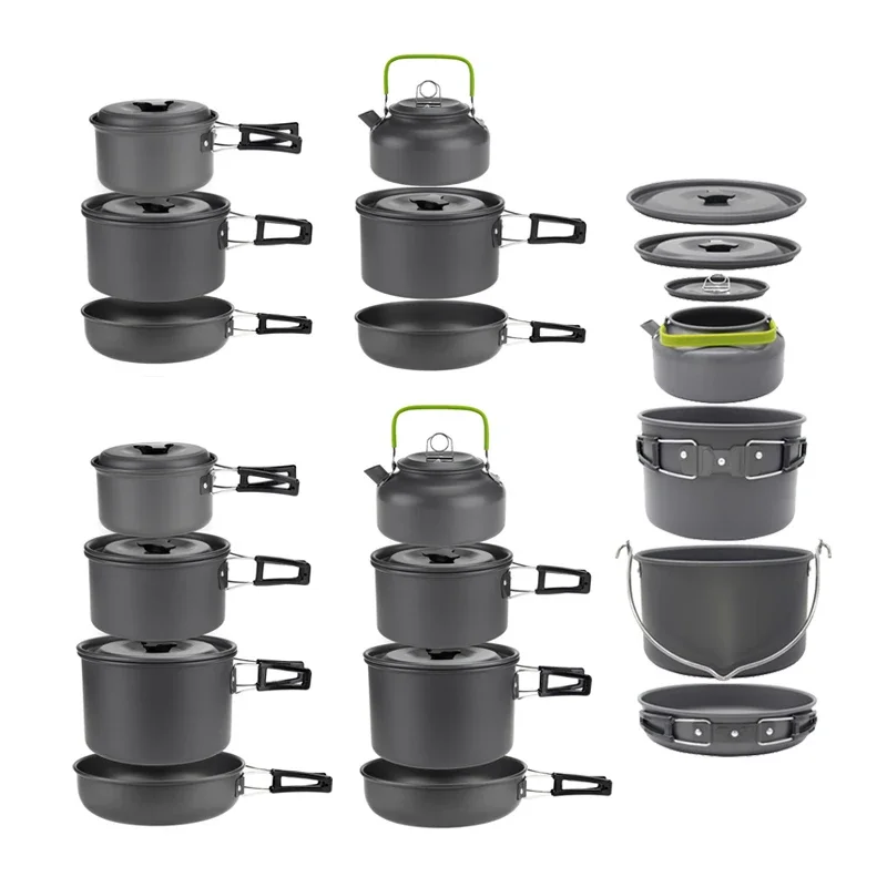 This portable lightweight camping cookware set is designed for 1–7 people, making it perfect for outdoor adventures, hiking, and camping trips. The set includes durable pots and pans that are easy to carry, cook with, and clean. Compactly packed in a convenient carrying bag, it ensures effortless transport and organization. Ideal for preparing meals in the outdoors, this versatile cookware set combines practicality, durability, and portability, making every camping experience more enjoyable and convenient.