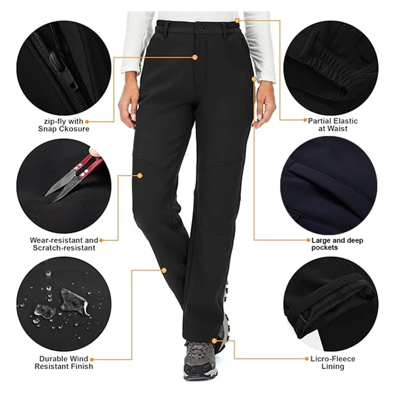 These Women’s Warm Waterproof Soft-Shell Pants are designed for cold-weather comfort during hiking, camping, skiing, and winter travel. Featuring a windproof outer layer and cozy fleece lining, they provide excellent insulation while keeping moisture out. The durable, flexible fabric allows full mobility, making them ideal for trekking and active outdoor use. With a flattering fit and all-season performance, these trousers deliver warmth, protection, and comfort for every adventure.